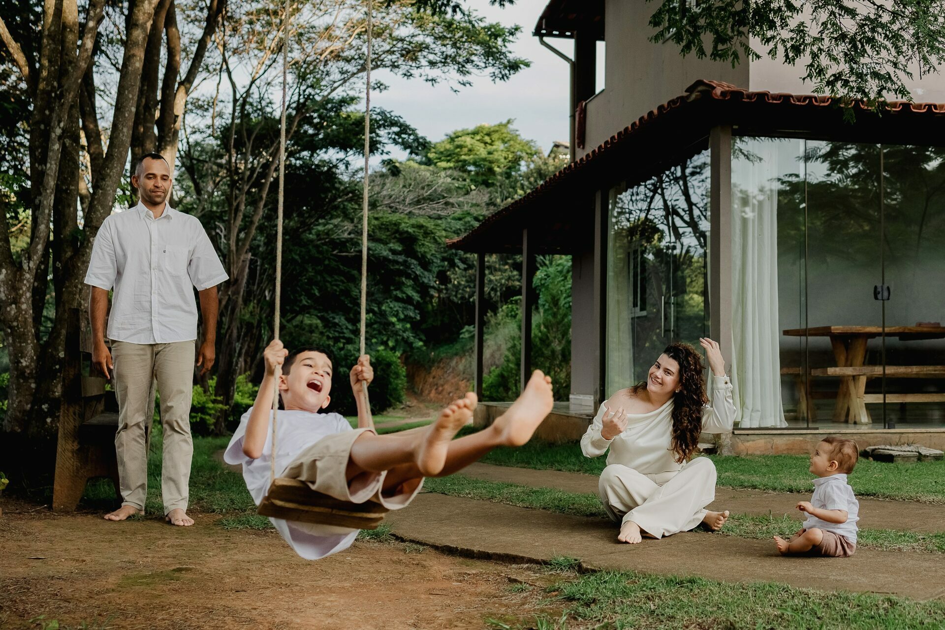 Durante o ensaio fotográfico de família ao ar livre, a luz natural teve papel fundamental, trazendo suavidade, leveza e um resultado estético atemporal. Além disso, o contato com a natureza contribui para criar um clima mais descontraído, favorecendo sorrisos verdadeiros e momentos genuínos.