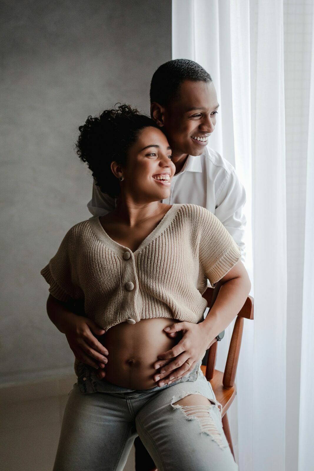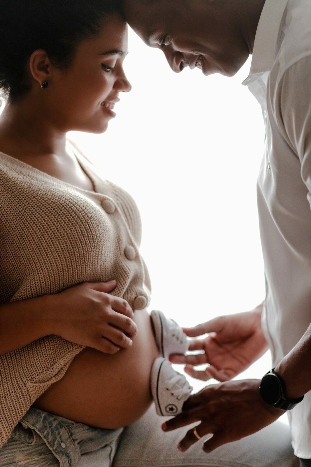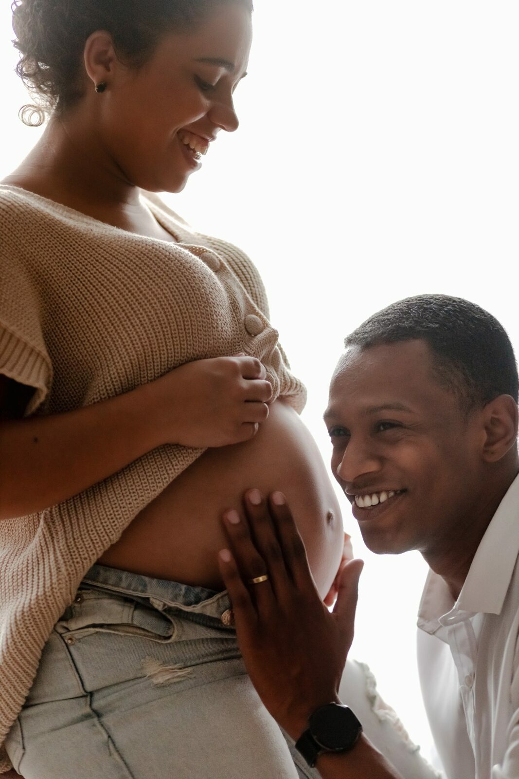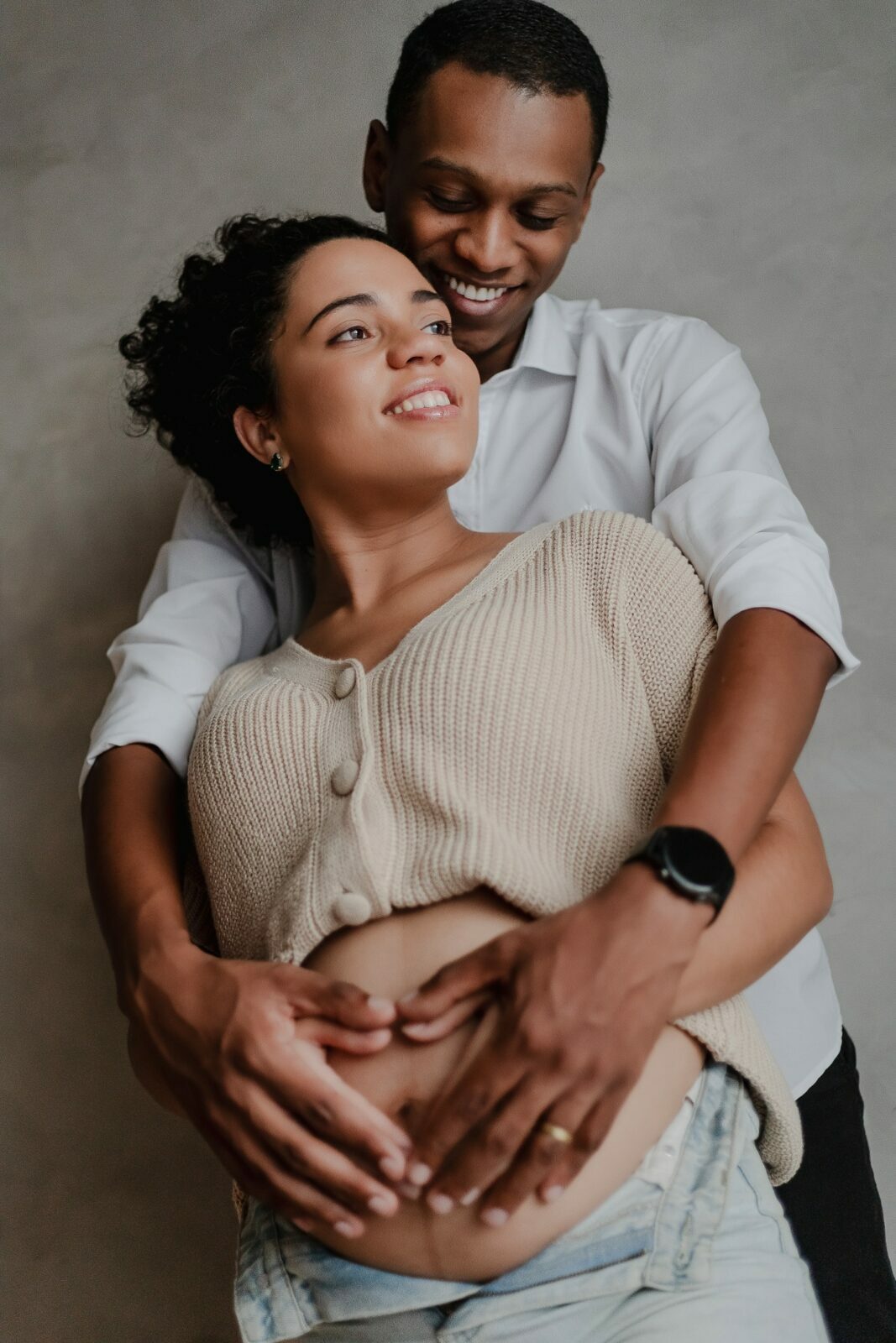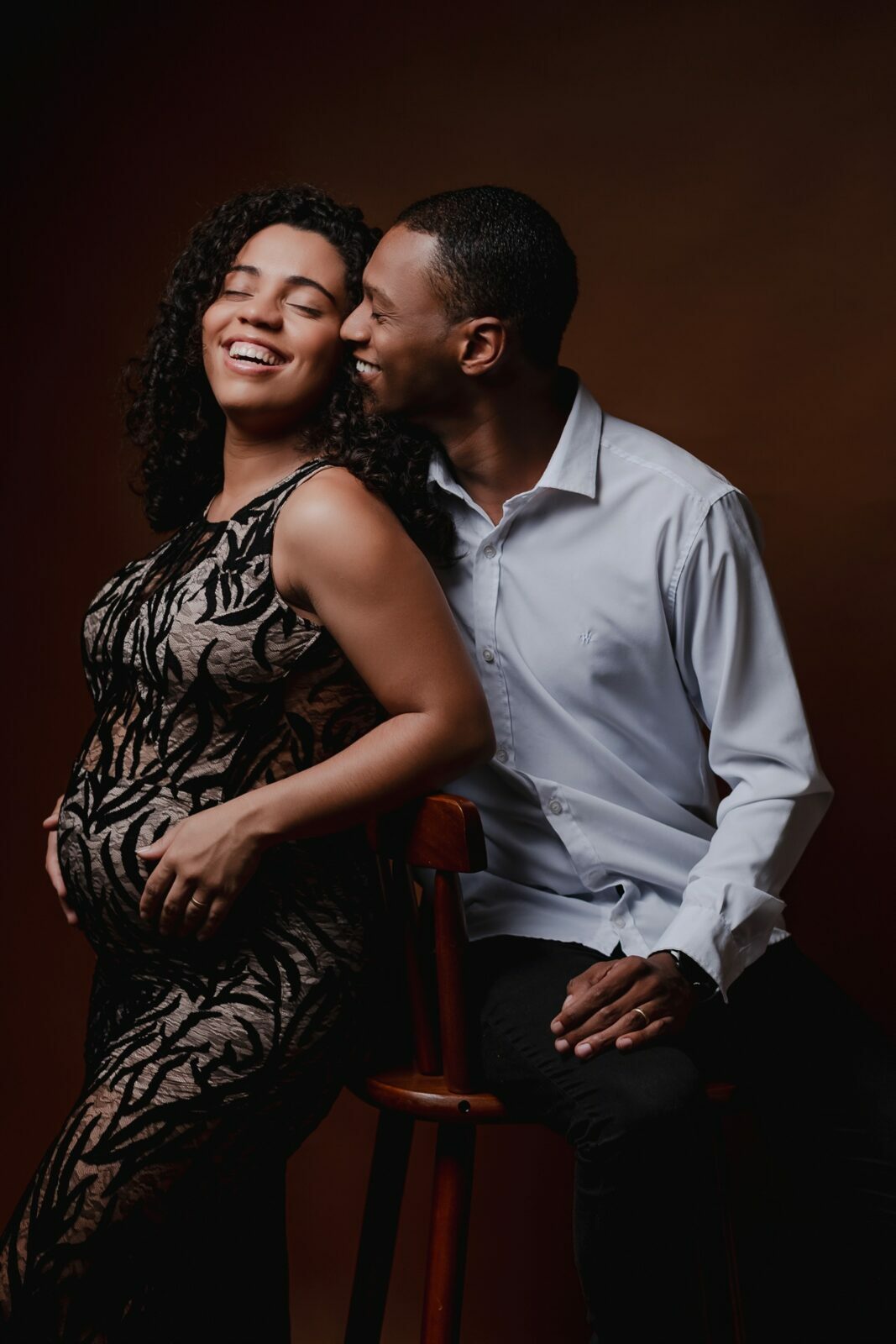 Durante o ensaio fotográfico gestante em estúdio, são valorizados os gestos, os olhares e a proximidade entre Nedina e Jonatas, traduzindo em imagens toda a expectativa e o amor envolvidos na espera pelo bebê.